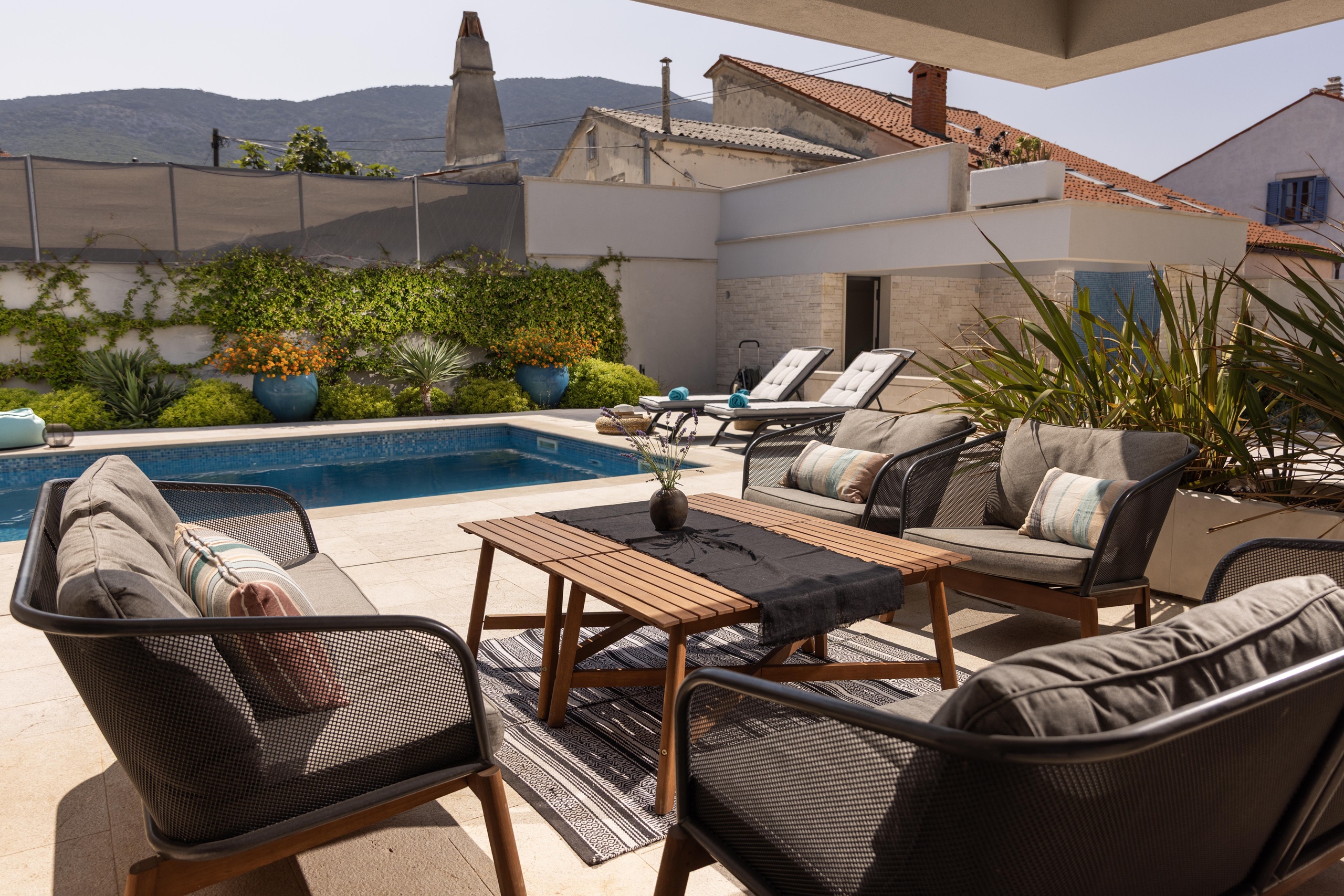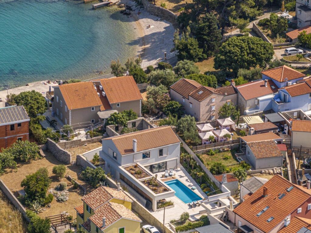 Located on the sunny island of Lošinj, in the picturesque village of Nerezine, our villa offers the perfect retreat for everyone seeking peace, natural beauty, and top comfort. Nerezine is a small Mediterranean village with three charming little harbors, narrow streets, and an authentic island pace of life. In summer, the place comes alive – boats gently sway in the harbor, terraces are filled with laughter and the scent of the sea, and above it all rises the mighty Osoršćica (588 m) – a hill perfect for easy hikes and excursions, with an unforgettable view from the top over the entire archipelago and crystal-clear sea.