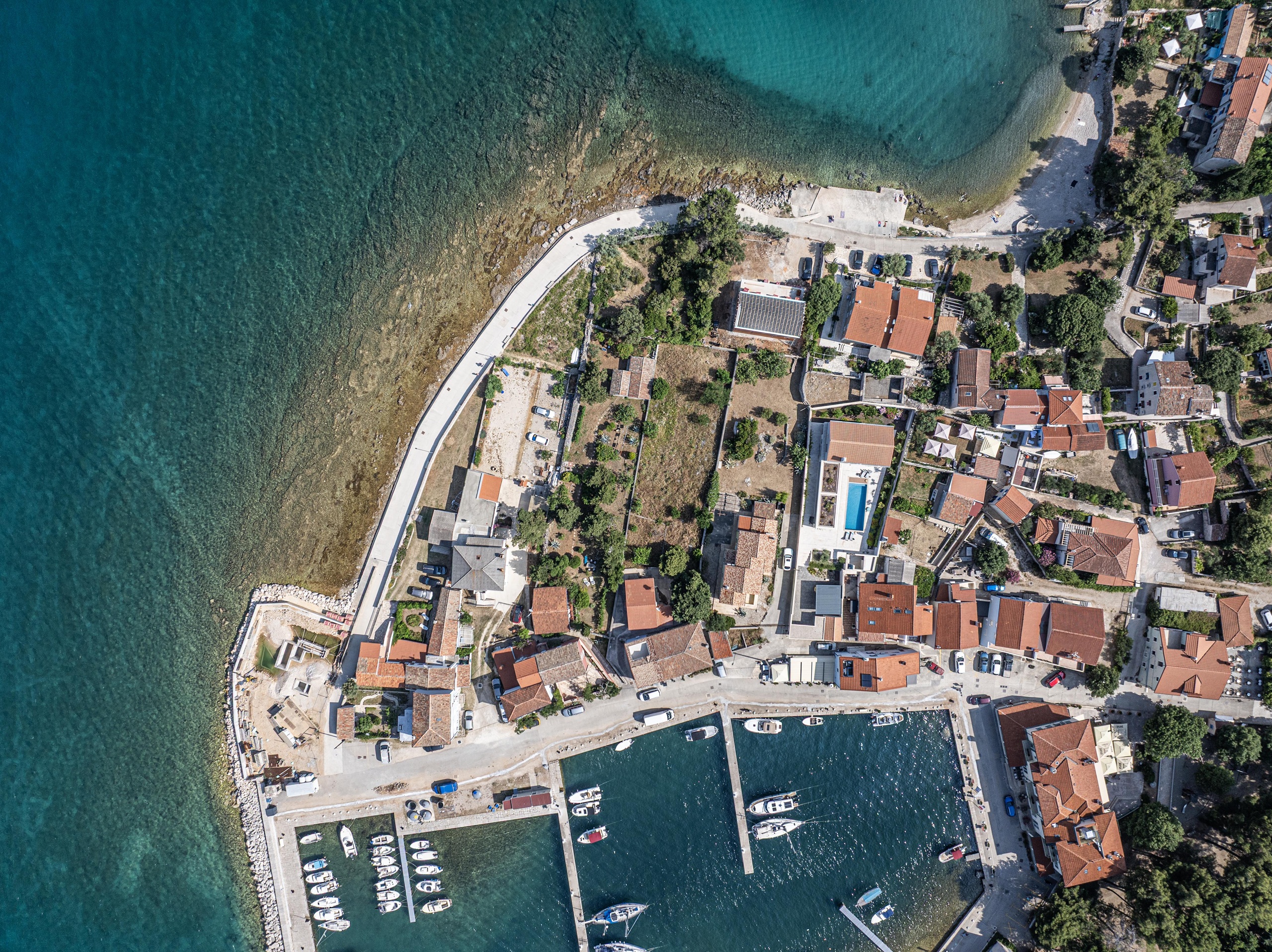 Our villa is ideally positioned in the heart of the Cres-Lošinj (Apsyrtides) archipelago, perfect for exploring both islands and the surrounding islets. The town of Mali Lošinj is only a 15-minute drive away, and the town of Cres 25 minutes, giving you easy access to numerous attractions, restaurants, and cultural landmarks such as the Museum of Apoxyomenos in Mali Lošinj, which houses the unique, perfectly preserved ancient bronze statue of the athlete Apoxyomenos, one of the rare examples found in Europe. While exploring the Lošinj waters by speedboat, playful dolphins are often seen since this area is their natural habitat, and we recommend a trip to the island of Susak – a unique sandy island in Europe, famous for its incredible story and tradition.